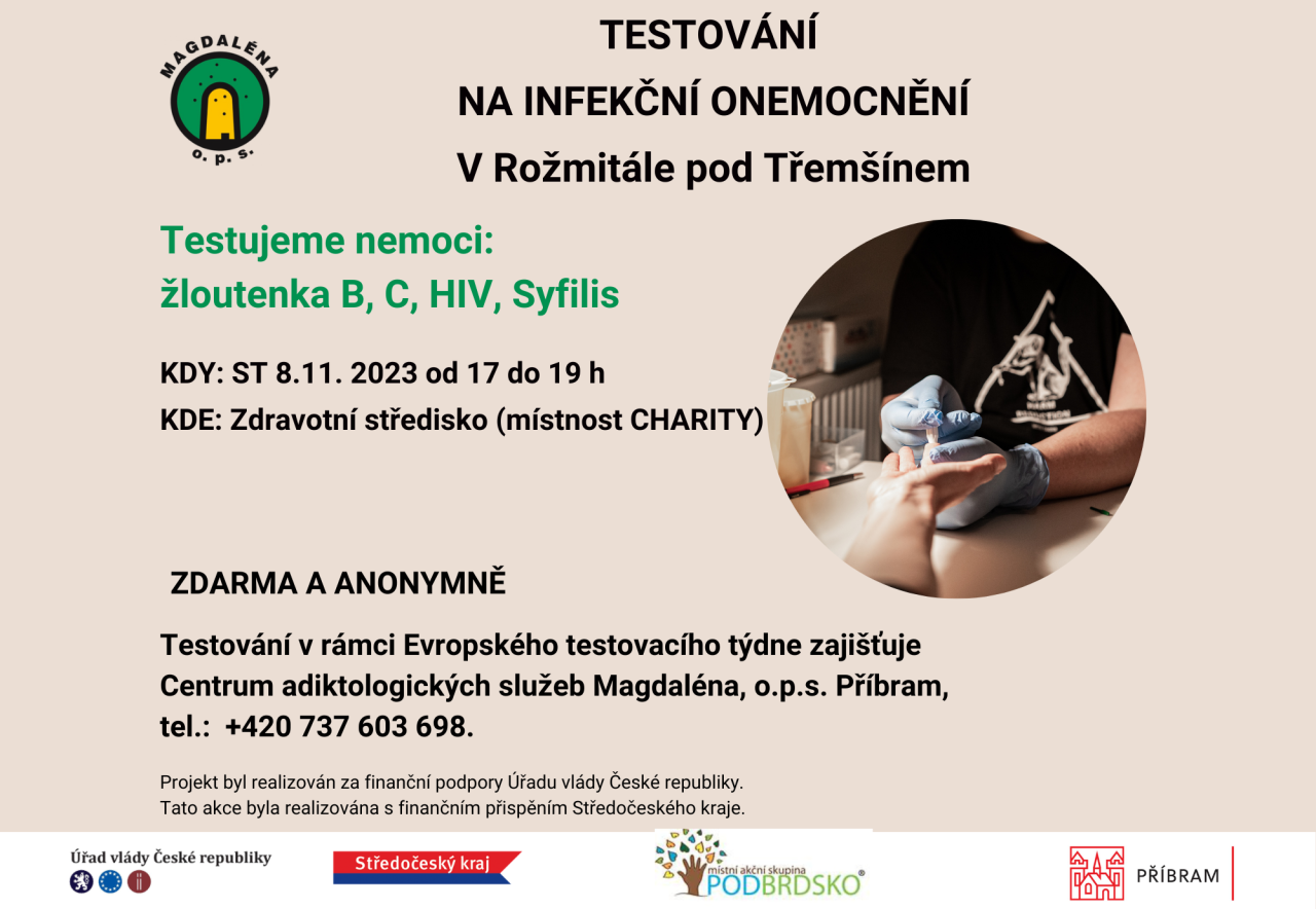 Centrum adiktologických služeb Magdaléna z Příbrami pořádá v Rožmitále pod Třemšínem testování na infekční nemoci ve středu 8.11.2023 od 17:00 hodin...